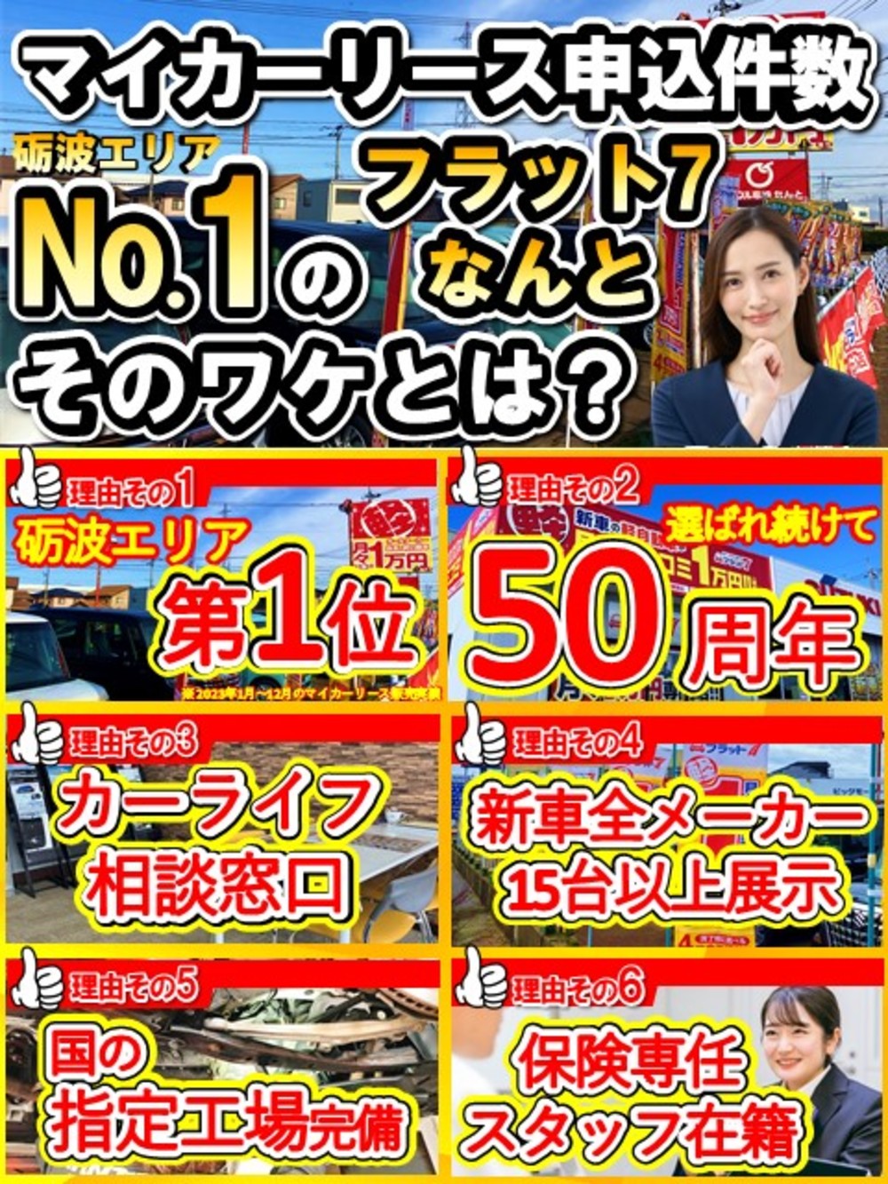 そのため実際の月々は割高にはなりません。設定残価はリースアップ時の売却予定価格ですので、フラット7では、人気車種に絞って高い残価を設定しました。